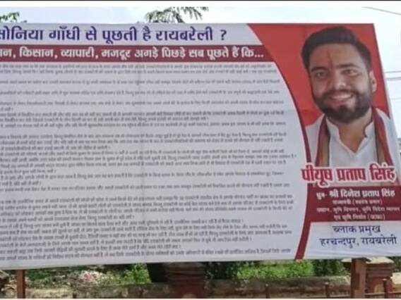 UP Politics: साल 2024 के लोकसभा चुनाव से पहले उत्तर प्रदेश का सियासी पारा चढ़ने लगा है. रायबरेली (Raebareli) में होर्डिंग्स लगाकर सांसद सोनिया गांधी (Sonia Gandhi) से सवाल पूछे गए हैं. मंत्री के बेटे की तरफ से लगाए गए होर्डिंग्स में 16 सवालों की लंबी लिस्ट है. बता दें कि होर्डिंग्स में राज्य मंत्री स्वतंत्र प्रभार दिनेश प्रताप सिंह (Dinesh Pratap Singh) के बेटे पीयूष प्रताप सिंह का नाम, पद और फोटो है. पीयूष प्रताप सिंह हरचंदपुर ब्लॉक के प्रमुख हैं. ऐसे में होर्डिंग्स लगाने के पीछे राजनीतिक उद्देश्य छिपे होने से इंकार नहीं किया जा सकता. अंदाजा लगाना मुश्किल नहीं है कि किसान, नौजवान, व्यापारी, मजदूर, अगड़े-पिछड़े की आड़ में सोनिया गांधी पर निशाना साधा गया है.