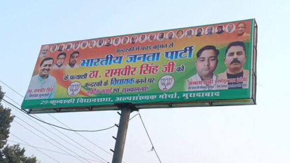 मुरादाबाद की कुंदरकी विधानसभा सीट पर हुए उपचुनाव की वोटों की गिनती सुबह आठ बजे से शुरू हो चुकी है, लेकिन इससे पहले भारतीय जनता पार्टी की तरफ से एक पोस्टर सामने आया है. जिसमें कुंदरकी बीजेपी प्रत्याशी ठाकुर रामवीर सिंह को कुंदरकी का भावी विधायक बताते हुए समर्थकों ने उन्होंने बधाई दी है. बीजेपी समर्थकों ने होर्डिंग्स पर लिखा है कि "कुंदरकी में प्रचंड बहुमत से भारतीय जनता पार्टी के प्रत्याशी ठाकुर रामवीर सिंह जी को कुंदरकी के विधायक बनने पर हार्दिक बधाई एवं शुभकामनाएं. ये पोस्टर अल्पसंख्यक मोर्चा की तरफ से लगाए गए हैं.