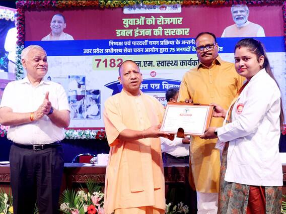Lucknow News: लोकसभा चुनाव 2024 (Lok Sabha Election 2024) से पहले सरकार ने मिशन रोजगार (Mission Rojgar) की रफ्तार को तेज कर दिया है. इसी कड़ी में सीएम योगी (Yogi Adityanath) ने आज 7 हजार 182 एएनएम (ANM) को नियुक्ति पत्र बांटे. इस अवसर पर सीएम योगी ने कहा कि सरकार ने 6 साल में 6 लाख सरकारी नौकरी देने का काम किया है. सीएम ने कहा कि आज का यह कार्यक्रम सिर्फ मिशन रोजगार ही नही बल्कि मिशन शक्ति से भी जुड़ जाता है. वहीं सीएम योगी ने नियुक्तियों के मुद्दे को लेकर विपक्ष पर भी निशाना साधा. कार्यक्रम में डिप्टी सीएम ब्रजेश पाठक (Brajesh Pathak) भी मौजूद रहे.