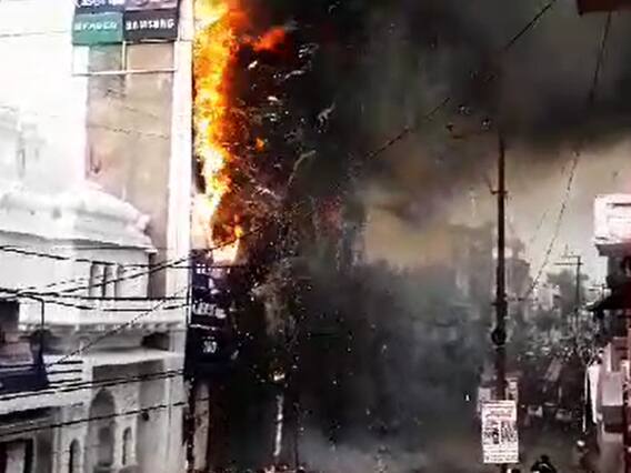 Jhansi Fire: उत्तर प्रदेश के झांसी में थाना सीपरी बाजार में स्थित रामा बुक डिपो चौराहे के पास बने बीआर ट्रेडर्स में भीषण आग लग गई. यह आग इतनी भीषण थी कि इसने आस-पास की चपेट में आने वाली दुकानों को भी ले लिया. वहीं इस हादसे में कई लोग भी झुलस गए हैं, लेकिन पुलिस यह नहीं बता पा रही है कि झुलसने वालों की संख्या कितनी है. वहीं मौके पर पहुंचकर पुलिस दमकल कर्मी आग को बुझा रहे हैं. यह आग इतनी भीषण थी कि आस-पास के इलाके में हड़कंप मच गया था.