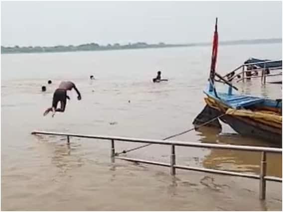UP News: पहाड़ों पर भारी बारिश के बाद धीरे-धीरे मैदानी नदियों का जलस्तर लगातार बढ़ रहा है. वहीं बढ़ते जल स्तर के साथ स्थानीय पुलिस प्रशासन स्टंट बाजों से फिलहाल काफी परेशान दिखाई दे रही है. उत्तर प्रदेश के मिर्जापुर में गंगा नदी इस वक्त अपने उफान पर बह रही है. ऐसे में स्थानीय बच्चे गंगा किनारे स्टंट करने से बाज नहीं आ रहे हैं. कोई पेड़ से छलांग लगा रहा है तो कोई पत्थर के गुंबद से पानी में कूद रहा है. बच्चे एक साथ झुंड में आ रहे हैं और बारी-बारी करके नदियों में छलांग लगा रहे हैं. गंगा नदी में इस वक्त पानी का बहाव बहुत तेज है लेकिन उसके बावजूद बच्चे नदियों में खेलने से नहीं डर रहे हैं.