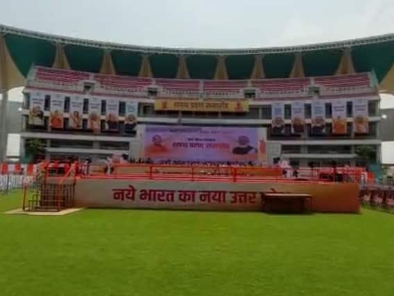 Ekana Stadium Ready For Swearing-In: अब से कुछ घंटे बाद, कल 25 मार्च को योगी आदित्यनाथ (Yogi Adityanath) लगातार दूसरी बार उत्तर प्रदेश के मुख्यमंत्री पद की शपथ लेंगे. इसके लिए इकाना स्टेडियम (Ekana Stadium) में शपथ ग्रहण की तैयारियां अंतिम दौर मे में हैं और स्टेडियम के भीतर मंच के सामने एक खाली स्थान पर फूलों से भारतीय जनता पार्टी का चुनाव निशान कमल का फूल बनाया जा रहा है. गेंदे के लाल और पीले फूलों से बन रहे कमल के फूल के नीचे शपथ ग्रहण समारोह भी फूलों से ही लिखा गया है. स्टेडियम में चारों तरफ प्रधानमंत्री नरेंद्र मोदी, गृहमंत्री अमित शाह, भारतीय जनता पार्टी के राष्ट्रीय अध्यक्ष जेपी नड्डा, योगी आदित्यनाथ समेत तमाम बड़े नेताओं के बैनर भी लगा दिए गए हैं. स्टेडियम के भीतर की सजावट और व्यवस्थाओं का एक्सक्लूसिव नजारा सामने आया है.