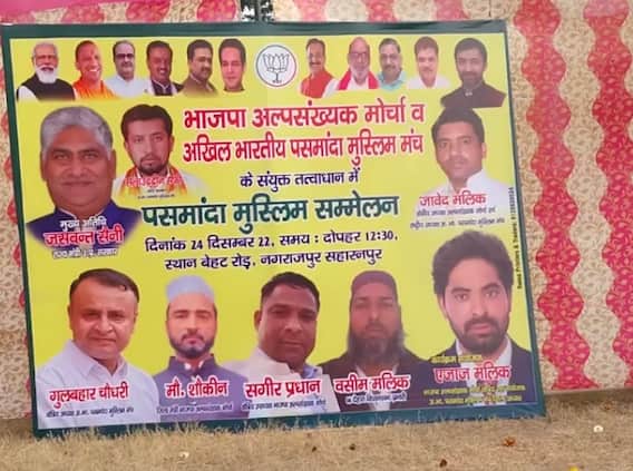 BJP Pasmanda Muslim Sammelan in Saharanpur: सहारनपुर के ग्राम नगराजपुर में पसमांदा मुस्लिम सम्मेलन आयोजित हुआ, बेहट रोड स्थित गांव नगराजपुर में बीजेपी अल्पसंख्यक मोर्चा एवं अखिल भारतीय पसमांदा मुस्लिम मंच ने इस सम्मेलन का आयोजन किया. इस सम्मेलन में मुख्य अतिथि को तौर पर राज्य मंत्री जसवंत सैनी और क्षेत्रीय अध्यक्ष अल्पसंख्यक मोर्चा व राष्ट्रीय अध्यक्ष पसमांदा मुस्लिम मंच जावेद मलिक भी उपस्थित रहे. जिन्होंने नगर निकाय चुनाव में बीजेपी को जिताने की बात कही. पसमांदा मुस्लिम मंच के राष्ट्रीय अध्यक्ष जावेद मलिक ने कहा कि बीजेपी अल्पसंख्यक मोर्चा के द्वारा पसमांदा मुस्लिम सम्मेलन का आयोजन किया गया था जो सकुशल संपन्न हुआ है, इस सम्मेलन में यूपी सरकार के राज्य मंत्री जसवंत सैनी आए. पसमांदा समाज जो हर वक्त छला गया है जिसको हर पार्टी ने छला है उसने अपना आज वजूद दिखाया है. प्रधानमंत्री नरेंद्र मोदी ने पसमांदा समाज को मुख्यधारा में लाने का एहसास कराया है. उन्होंने कहा कि ये सम्मेलन 2024 की तैयारी के लिए था. पसमांदा समाज बीजेपी की तरफ जागरुक हो चुका है. वो जानता है कि बीजेपी की सरकार में पसमांदा समाज का विकास हो सकता है.