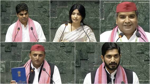 समाजवादी पार्टी (सपा) के अध्यक्ष अखिलेश यादव ने मंगलवार को लोकसभा की सदस्यता की शपथ ली. उत्तर प्रदेश के पूर्व मुख्यमंत्री कन्नौज से निचले सदन के सदस्य निर्वाचित हुए हैं. शपथ लेते समय उन्होंने अपने हाथ में संविधान की प्रति ले रखी थी.