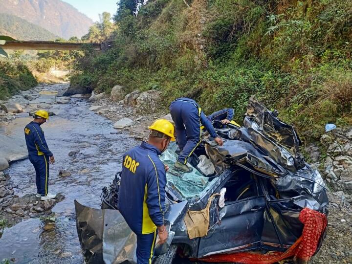 Uttarakhand Road Accident: उत्तराखंड के अल्मोड़ा में शेराघाट रोड लिगुडता मोड के पास एक बारात की गाड़ी गहरी खाई में गिर गई. इस हादसे में वाहन में 7 लोग सवार थे, जिसमें से 4 लोगों की मौत हो गई. 3 लोगों को घायल अवस्था में रेस्क्यू कर अस्पताल पहुंचाया गया. एसडीआरएफ की टीम ने 4 शवों को खाई से बरामद कर उसे मुख्य मार्ग तक लाई. एसडीआरएफ की टीम ने सभी 4 शवों को राजस्व पुलिस को सुपुर्द कर दिया. गौरतलब है कि जयन्त सिंह के पुत्र की शादी में शामिल होने के लिए सभी लोग बेरीनाग गए थे. शादी के बाद सभी बाराती वापस आ रहे थे. इसी दौरान गाड़ी अनियंत्रित हो गई और खाई में गिर गई. इस घटना में 4 बाराती की मौत हो गई.
