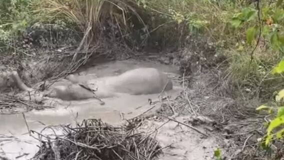 ट्रेन की चपेट में आने से दलदल में जा गिरा हाथी