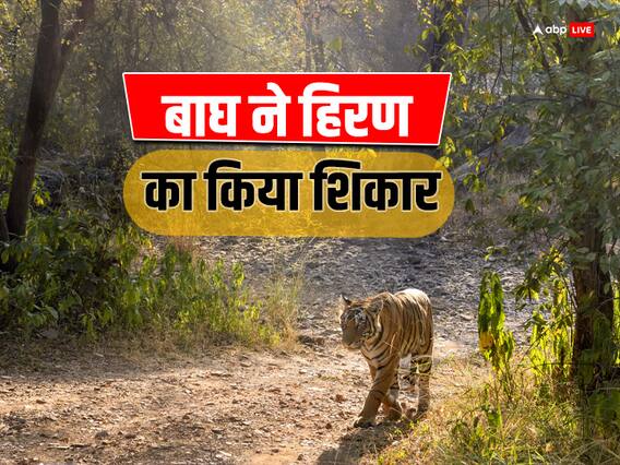 बंगाल टाइगर की ताकत देखकर पर्यटक हैरान रह गए. शाम को ढिकाला जोन से पर्यटक जंगल की सफारी के बाद बाहर निकल रहे थे. अचानक हिरण के झुंड की ओर तेजी से भागता हुआ टाइगर बाघ दिखाई दिया. पर्यटकों की सांसे थम गईं. बंगाल टाइगर ने एक हिरण पर अटैक कर दिया. हिरण ने बाघ के शिकार से बचने की भरपूर कोशिश की. खूंखार बाघ के आगे हिरन की तरकीब नाकाम हो गई.