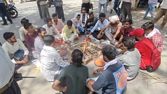 BHU Students Protest: उत्तर प्रदेश के वाराणसी में काशी हिन्दू विश्वविद्यालय के चिकित्सा संस्थान और ट्रॉमा सेंटर में असुविधाओं व कर्मचारियों के व्यवहार को लेकर छात्रों का विरोध प्रदर्शन लगातार जारी है. इसी बीच विश्वविद्यालय में छात्रों की तरफ से अधिकारियों और कर्मचारियों को सद्बुद्धि देने के लिए बुद्धि-शुद्धि यज्ञ किया गया और मांग की गई की विश्वविद्यालय की चिकित्सा संस्थान में अपनी व्यवस्थाओं को दुरुस्त करके दूर-दराज से आने वाले मरीजों को बेहतर सुविधाएं उपलब्ध कराई जाए.