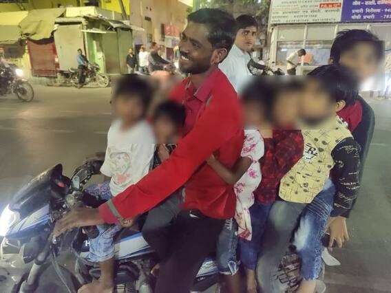 Road Accidents In Country: देश में बढ़ती सड़क दुर्घटना एक चिंता का विषय है और इसके पीछे प्रमुख वजह यातायात नियमों का उल्लंघन भी है. इसी कड़ी में वाराणसी में एक तस्वीर सोशल मीडिया पर जमकर वायरल हो रही है. दरअसल वायरल हो रहे इस फोटो में एक युवक दो पहिया वाहन पर 6 बच्चों के साथ जाता नजर आ रहा है. चेकिंग के दौरान ट्रैफिक पुलिस की तरफ से उसे रोककर फटकार लगाई जाती है और चालान काटने के लिए भी कहा जाता है. लेकिन पीछे बैठे बच्चों के आग्रह करने पर चेतावनी देते हुए उस युवक को छोड़ दिया जाता है.