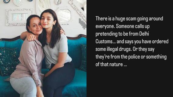 सोनी राजदान ने अपने पोस्ट में लिखा, "हम लोगों के आसपास बहुत बड़ा स्कैम चल रहा है. किसी ने मुझे फोन किया और कहा कि वह दिल्ली कस्टम से बोल रहा है. उसने मुझसे कहा कि मैंने कोई गैरकानूनी ड्रग्स ऑर्डर की हैं. साथ ही कहा कि वह पुलिस से हैं. इसके बाद उसने मेरा आधार कार्ड नंबर मांगा और पैसे ऐंठने की कोशिश की. लेकिन मैंने उनके साथ जानकारी शेयर नहीं की और कहा कि मैं बाद में बात करूंगी." सोनी राजदान ने आगे लिखा, "मैं ऐसे तीन लोगों को जानती हूं, जिनके पास ऐसा फोन आ चुका है. इसलिए ये पोस्ट शेयर कर रही हूं क्योंकि कोई भी इससे डर सकता है."