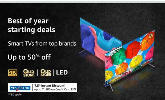 Amazon Deal On Smart TV: स्मार्ट टीवी पर अमेजन पर सेल चल रही है जिसमें 50% से ज्यादा डिस्काउंट है. इन टीवी में 4K Ultra HD रिजॉल्यूशन है और दमदार ऑडियो के साथ स्क्रीन मिररिंग और दूसरे शानदार फीचर हैं. इन टीवी को YES बैंक के कार्ड से खरीदने पर 1,500 रुपये का कैशबैक और एक्सचेंज बोनस अलग से मिल रहा है.