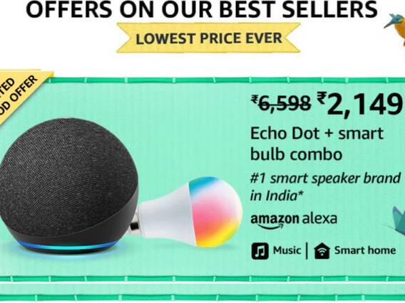 एमेजॉन की सेल में ये स्मार्ट स्पीकर भी सेल में सबसे कम प्राइस में मिलना वाला है. इस स्पीकर की कीमत है 4,499 रुपये लेकिन एमेजॉन प्राइम सेल में इस स्पीकर को सिर्फ 2,099 रुपये में खरीद सकते हैं. इस स्मार्ट स्पीकर से आप Amazon Prime Music, Spotify, JioSaavn, Gaana, Apple Music जैसे पॉपुलर म्यूजिक एप से लाखों गाने सुन सकते हैं. ये स्पीकर ब्लूटूथ स्पीकर की तरह काम करते हैं और आप इनको दूसरे म्यूजिक डिवाइस या फोन से भी कनेक्ट कर सकते हैं.