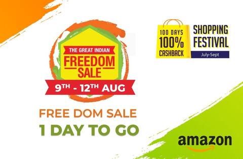 नई दिल्ली: एमेजन फ्रीडम सेल की शुरूआत कल रात के 12 बजे से शुरू हो रही है. ये सेल 9 अगस्त से लेकर 12 अगस्त तक चलेगा. इस सेल के दौरान ई टेलर कई तरह के डील्स और डिस्काउंट दे रहा है जहां 200 कैटेगरी को शामिल किया गया है.