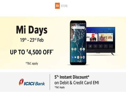 नई दिल्ली: चीनी स्मार्टफोन मेकर शाओमी ने मी डेज़ सेल का एलान कर दिया है जो एमेजन पर चलेगी. सेल की शुरूआत आज से हो रही है जो 23 फरवरी तक चलेगी. सेल के दौरान यूजर्स 4500 रुपये तक का डिस्काउंट मी स्मार्टफोन्स और मी टीवी पर पा सकते हैं. वहीं ICICI बैंक के क्रेडिट और डेबिट कार्ड पर 5 प्रतिशत का इंस्टैंट डिस्काउंट भी शामिल है.