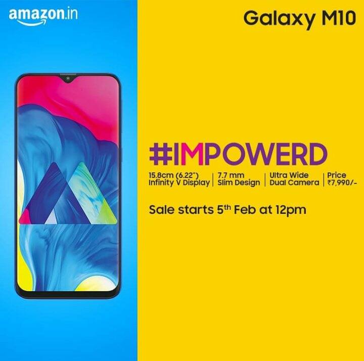 दोनों डिवाइस एमेजन इंडिया पर 5 फरवरी से उपलब्ध होंगे. ये इंफिनिटी वी-डिस्प्ले, अल्ट्रा वाइड लेंस के साथ डुअल कैमरा और एक नया सैमसंग एक्सपीरिएंस यूएक्स से लैस होंगे. गैलेक्सी एम20 स्मार्टफोन में सैमसंग ने Exynos 7904 प्रोसेसर दिया है, जबकि एम10 में Exynos 7870 प्रोसेसर दिया है.