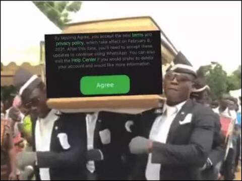 टेलेग्राम ने पहले दो स्पाइडर मैन मीम के साथ वाट्सएप का मज़ाक उड़ाया था और अब एक और मीम के ज़रिए टेलेग्राम ने वाट्सएप का मज़ाक बनाया है. टेलेग्राम ने अपने ट्विटर अकाउंट पर घाना के उस वायरल वीडियो का जिफ शेयर किया है, जिसमें चार लोग ताबूत लेकर डांस करते नज़र आते हैं. इसमें टेलेग्राम ने ताबूत की जगह वाट्सएप की प्राइवेसी पॉलिसी के टेक्स्ट को रख दिया है. दरअसल घाना में पॉलबियरर्स का एक समूह है, जो अंतिम संस्कार में परफॉर्म करते हैं.