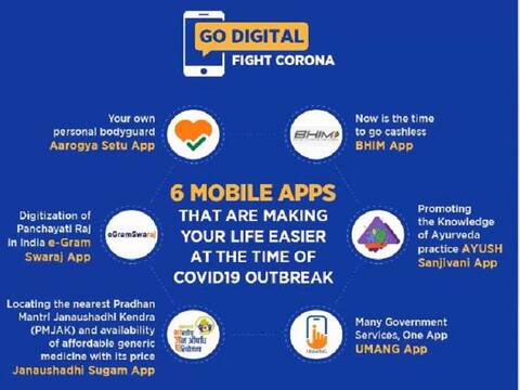 डिजिटल इंडिया के तहत केंद्र सरकार ने अपनी सेवाओं को लोगों तक पहुंचाने के लिए कई तरह की ऐप लॉन्च की हैं. अब इनमें से कई ऐप कोरोना से जंग में और लॉकडाउन के दौरान लोगों को आसानी से सेवा पहुंचाने में मदद कर सकती हैं.