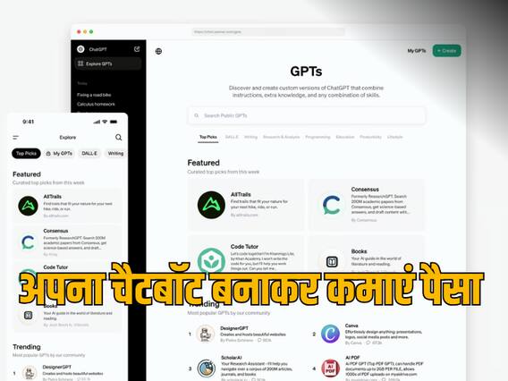 GPTs स्टोर पर मौजूद ऐप्स ओपन एआई के टेक्स्ट बेस्ड GPT-4 और इमेज जनरेटिंग मॉडल DALL-E 3 पर बेस्ड हैं. आप पॉपुलर GPTs को कम्यूनिटी लीडर बोर्ड पर एक्सेस कर सकते हैं, जिन्हें लाइफस्टाइल, राइटिंग, रिसर्च आदि कैटेगरी के हिसाब से लिस्ट किया गया है. ओपन एआई जल्द GPTs को मोनेटाइज करने का प्लान भी लाने वाली है. इसके बाद पॉपुलर क्रिएटर्स के साथ कंपनी रेवेन्यू शेयर करेगी.