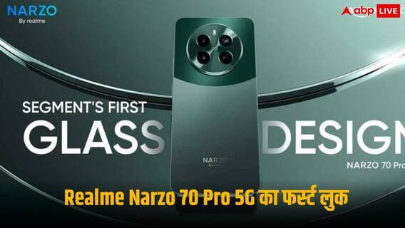 Realme Narzo 70 Pro 5G Details: चाइनीज कंपनी रियलमी जल्द ही Realme Narzo 70 Pro 5G स्मार्टफोन लॉन्च करने जा रही है. हालांकि इसकी लॉन्चिंग की तारीख सामने नहीं आई है. रियलमी के अपकमिंग फोन की पहली तस्वीर सामने आ चुकी है. फोन ग्रीन कलर ऑप्शन में नजर आ रहा है, जिसकी तस्वीर अमेजन पर टीज की गई है. रियलमी ने दावा किया है कि अपनी प्राइस रेंज में यह ग्लास डिजाइन वाला इकलौता स्मार्टफोन होगा.