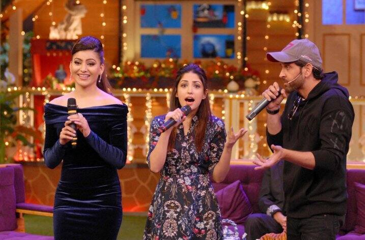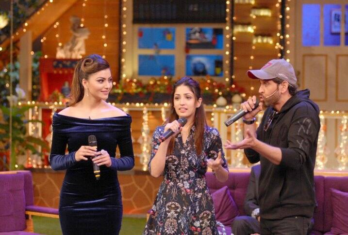 बॉलीवुड अभिनेता ऋतिक रोशन, यामी गौतम, उर्वशी रौतेला और फिल्म निर्माता राकेश रोशन मुंबई में कपिल शर्मा ने शो के सेट पर फिल्म 'काबिल' के प्रमोशन के लिए पहुंचे.