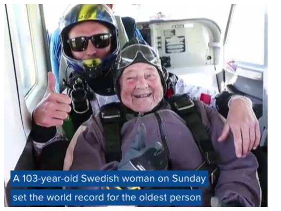 ऐसा ही एक रिकॉर्ड स्वीडन की 103 साल की महिला रट लार्सन (Rut Larsson) ने तोड़ा है. 103 वर्षीय ये महिला पैराशूट कूद (tandem parachute jump) पूरी करने वाली दुनिया की सबसे अधिक उम्रदराज महिला (oldest lady) बन गईं हैं.