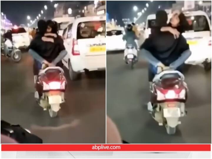 दरअसल सड़क पर चलने के दौरान पुलिस प्रशासन लोगों को यातायात के नियमों का पालन करने की सलाह देती है. जिससे वाहन चला रहा शख्स खुद को और दूसरों को सुरक्षित रख सकता है. गलत तरह से वाहन चलाने पर हादसा होने पर कई लोगों की जान जोखिम में होती है. फिलहाल वायरल हो रही वीडियो में एक युवक बाइक चलाते नजर आ रहा है. वहीं उसकी प्रेमिका उसे बाहों में भरे नजर आ रही है.
