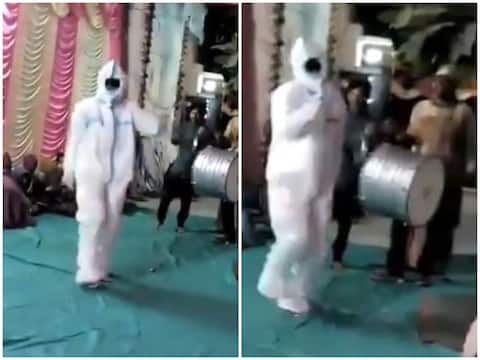 वीडियो को देखने से पता चला रहा है कि शादी में शामिल होने के लिए लंबी यात्रा के बाद पहुंचे शख्स को 'होम आइसोलेशन' में रखा गया था. जो शादी समारोह के दौरान बैंड-बाजे की धुन के आगे खुद पर काबू नहीं रख पाया और पूरी सुरक्षा के साथ पीपीई किट पहन शादी में शामिल हो गया.