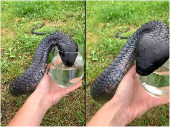वायरल हो रहा यह वीडियो सोशल मीडिया के कई प्लेटफॉर्म पर शेयर किया जा रहा है. जिसे इंस्टाग्राम पर thebeautifulshorts नाम के प्रोफाइल से पोस्ट किया गया है. इस वीडियो में एक काले रंग के खतरनाक कोबरा सांप को कांच के गिलास में मुंह डाल कर उसमें रखे पानी से अपनी प्यास बुझाते देखा जा रहा है. जो तेजी से पानी पीने के बाद अपने सिर को गिलास से बाहर निकाल कर शख्स की ओर बढ़ते देखा जा रहा है.