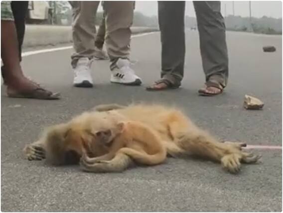 अक्सर सड़क पर चलने के दौरान इंसानों के साथ ही जानवर भी हादसों का शिकार हो जाते हैं. ऐसे में गंभीर रूप से घायल होने पर इंसानों के साथ ही जानवरों की भी मौत हो जाती है. हाल ही में एक ऐसा ही वीडियो सोशल मीडिया पर सामने आया है, जिसमें एक हादसे के बाद एक मादा लंगूर गंभीर रूप से घायल होने के बाद मर जाती है. जिसके बाद उसका छोटा सा बच्चा अपनी मरी हुई मां को जिंदा करने की कोशिश करते देखा जा रहा है.