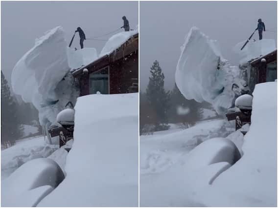 वायरल हो रहे इस वीडियो को सोशल मीडिया पर एबीसी न्यूज ने इंस्टाग्राम पर पोस्ट किया है. वीडियो में संयुक्त राज्य अमेरिका के कैलिफोर्निया में सिएरा नेवादा की पहाड़ियों पर रिकॉर्ड बर्फीली सर्दी के बाद घरों को बर्फ की परत के नीचे घिरा देखा गया है. इस बीच अपने घर की छत से हटा रहे दो युवकों का वीडियो तेजी से वायरल हो रहा है. वीडियो में जैसे ही शख्स बर्फ के टुकड़े को आरी की मदद से काटता है तो पत्थर के टुकड़े के बराबर बर्फ टूटकर गिरती नजर आती है.