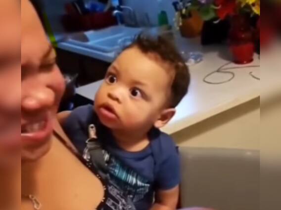 इस वायरल वीडियो में लोगों को बच्चे के क्यूट और शॉक्ड एक्सप्रेशन्स काफी पसंद आए है. दरअसल मां बच्चे को गोद में लेकर खाना खा रही थी. जबकि पिता उन दोनों की वीडियो बना रहे थे. मां को खाना खाते देख बच्चा अजीबोगरीब एक्सप्रेशन के साथ उन्हें देखने लगता है. बच्चे को देखकर ऐसा लग रहा है कि उसको खाना खाना है, लेकिन मां उसे खिला नहीं रही. जब-जब वो अपनी मां को खाने की बाइट लेते हुए देखता, वह उन्हें घूरकर देखने लगता. बच्चे के एक्सप्रेशन ऐसे लग रहे हैं, जैसे उसे गुस्सा आ रहा हो.