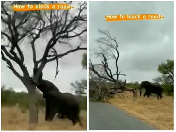 वीडियो में देखा जा रहा है कि हाथी (Elephant) ने बड़े ही आराम से पेड़ को गिरा कर पर्यटकों के लिए आने जाने वाली सड़क को ब्लॉक कर दिया है. फिलहाल यह वीडियो सोशल मीडिया (Social media) पर बड़ी है तेजी से वायरल (Viral Video) हो रहा है. जिसे देख यूजर्स की आंखें खुली की खुली रह गई हैं. वहीं हजारों की तादाद में यूजर्स अपने रिएक्शन कमेंट करते नजर आ रहे हैं.