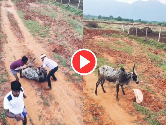 कुछ सेकंड का वीडियो देखकर मालूम होता है कि सांड आराम से खुले मैदान में टहल रहा है. मगर तभी कुछ मनचले सांड को परेशान करने के इरादे से उसके करीब पहुंचे. लड़कों ने एक ही झटके में सांड को जमीन पर गिरा दिया और उसकी नाक पकड़ ली और दूसरा उसकी पूंछ पकड़कर खड़ा हो गया. देख सकते हैं कि ऐसी पकड़ से सांड ठीक से हिल भी नहीं पाया. मगर बेचारों को क्या पता था कि यही सांड उनको दौड़ाने वाला है.