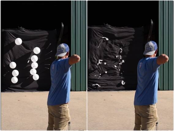 वायरल हो रही इस वीडियो को जेम्स जीन ने अपने इंस्टाग्राम अकाउंट jamesjeantrickshots पर पोस्ट किया है. इस वीडियो में जेम्स जीन नीली टीशर्ट पहने नजर आ रहे हैं. जो अपने सामने दिख रहे नौ गुब्बारों पर निशाना साधते देखे जा रहे हैं. तभी वह एक साथ नौ तीरों को धनुष से छोड़ देते हैं और एक ही साथ उनके छोड़े गए तीर अपने निशाने को भेदते हुए गुब्बारों पर लग जाते हैं.