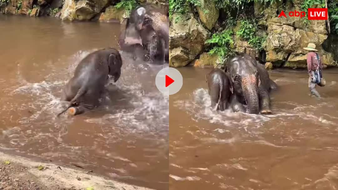वायरल वीडियो में दिख रहा है कि मां को पानी में देख हाथी का ये नन्हा राजकुमार बिना एक पल गंवाए अपनी छोटी-छोटी टांगों से तालाब की ओर दौड़ लगाता है. तेजी इतनी कि खुद को संभाल नहीं पाता और छलांग लगाने के चक्कर में तालाब में लुढ़ककर गिर पड़ता है. लेकिन उसे इस बात की बिल्कुल परवाह नहीं होती, क्योंकि उसकी मंजिल मां की ममता है. पानी में गिरते ही वो सीधे अपनी मां के पास पहुंचता है और फिर दोनों तालाब में छपछप करते हुए ऐसे खेलते हैं जैसे पूरी दुनिया उनके लिए रुक गई हो. इतना ही नहीं, तालाब में एक केयर टेकर भी मौजूद है जो पानी के पाइप से प्रेशर मारकर इस नन्हें हाथी को छेड़ रहा है.