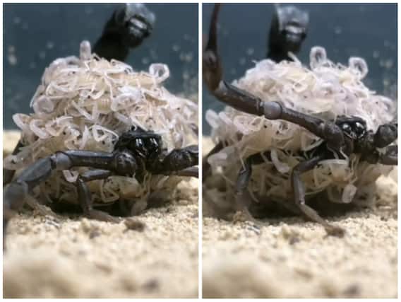 हाल ही में एक वीडियो सामने आया है, इसमें एक मादा बिच्छू को देखा जा रहा है, जिसके शरीर पर उसके ढेर सारे बच्चों को चिपका देख सकते हैं. फिलहाल इसे देख जहां कुछ यूजर्स कयास लगा रहे हैं कि मादा बिच्छू अपने बच्चों को बचाने के लिए उन्हें अपने शरीर पर लेकर चल रही है. वहीं कुछ इसके पीछे का सबसे बड़ा सच उजागर करते देखे जा रहे हैं.