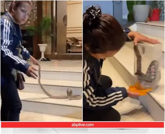हाल ही में एक वीडियो सामने आया है, जिसमें एक महिला को सांप का रेस्क्यू करते देखा जा रहा है. वीडियो में सांप को गुस्से से फन फैलाए देखा जा रहा है. जिसे देख अंदाजा लगाया जा सकता है कि सांप काफी घातक हो सकता है. वहीं उसके सामने खड़ी लड़की बिना डरे ही सांप को पकड़ कर एक प्लास्टिक के डिब्बे में बंद कर उसका रेस्क्यू करती नजर आ रही है. जिसे देख सोशल मीडिया यूजर्स भौंचक्के रह गए हैं.