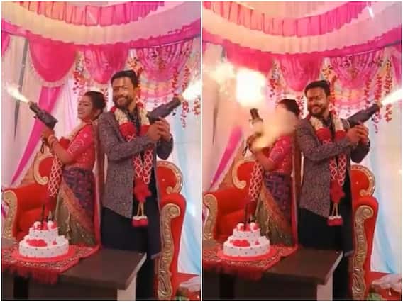 दरअसल शादी के दौरान दूल्हा-दुल्हन को हाथों में स्पार्कल गन लिए देखा जा सकता है. जिसे लेकर वह फोटो खिंचवा रहे थे. जिसके बाद एक छोटे से स्टंट के दौरान स्पार्कल गन से फायर कर स्पार्क को निकाला गया तो उसी दौरान दुल्हन के हाथ में पकड़ी हुई बंदूक फट गई और दुल्हन के चेहरे पर जा लगी. जिसके कारण दूल्हन के बाल और चेहरे के पास आग की लपटों को भी देखा गया.
