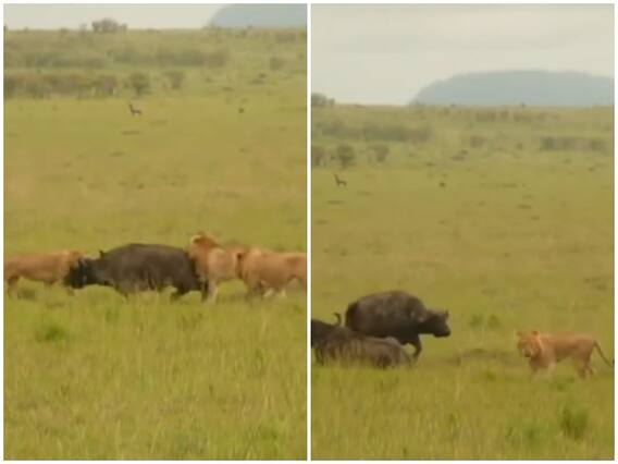 ऐसा होते ही शेरों का दल डर कर पीछे हो जाता है और शेरों के चंगुल से छूटते ही भैंस खड़ी होकर आगे निकल जाती है. इस तरह से भैंसों का दल अपने साथी की जान बचा लेता है. फिलहाल शेरों के दल को भैंसों के दल से हारते देख हर कोई हैरत में है.