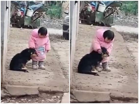 वायरल हो रहे वीडियो में एक डॉगी को देखा जा सकता है जो कि उसके पास ही चलाए जा रहे पटाखों से काफी डर जाता है. इस बीच एक बच्ची उसकी मदद के लिए सामने आते दिखाई दे रही है. वह प्यारी सी बच्ची डॉगी को पटाखों की आवाज से बचाने के लिए अपने हाथों से उसके कान को ढकते दिखाई दे रही है. जिसे देख हजारों का दिल पिघल गया है.