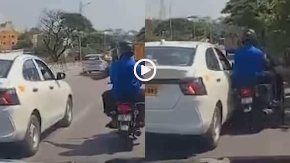 यह घटना बेंगलुरु के केआर पुरम ब्रिज पर हुई. वीडियो में साफ देखा जा सकता है कि सड़क पर एक बाइक आगे जा रही थी और उसके पीछे एक कैब चल रही थी. बताया जा रहा है कि बाइक चलते-चलते गलती से कैब से हल्की सी छू गई. सामान्य तौर पर ऐसी स्थिति में लोग रुककर बात करते हैं, लेकिन यहां मामला कुछ और ही हो गया.