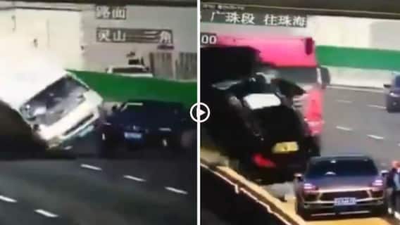 वीडियो में देखा जा सकता है कि सड़क पर एक पिकअप गाड़ी तेज रफ्तार में जा रही होती है. अचानक उसका बैलेंस बिगड़ जाता है और वह सड़क के दूसरी ओर जा रही एक कार से जोरदार टक्कर मार देती है. टक्कर इतनी भयानक होती है कि कार सड़क पर पांच बार पलटी खा जाती है और फिर हाईवे से नीचे जा गिरती है. उस वक्त हाईवे के किनारे एक दूसरी कार का ड्राइवर अपनी गाड़ी ठीक कर रहा होता है. जैसे ही उसने तेज रफ्तार कार को अपनी ओर आते देखा, उसने बिना देर किए वहां से दौड़ लगा दी और इसी वजह से उसकी जान बच गई.