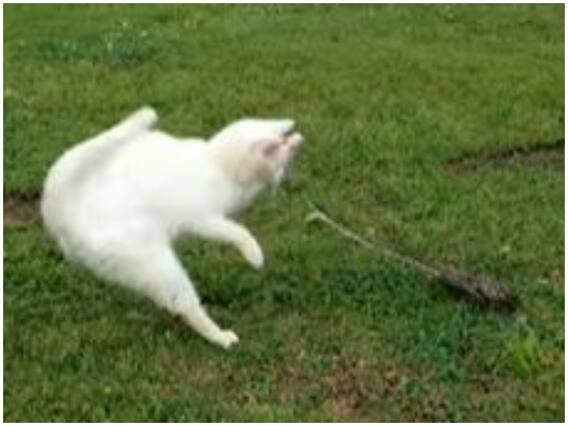 आमतौर पर देखा गया है कि बिल्लियां अपने आस-पड़ोस में दूसरे जानवरों के लेकर काफी सतर्क रहती हैं और उन्हें कई बार खूंखार जानवरों का सामना करते भी देखा गया है. ऐसे में घर के पार्क एरिया में निकले सांप को देख बिल्ली भड़क जाती है और तेजी से उस पर हमला करते देखी जा रही है. जिस बीच सांप को भी बिल्ली पर अटैक करते देखा गया है.