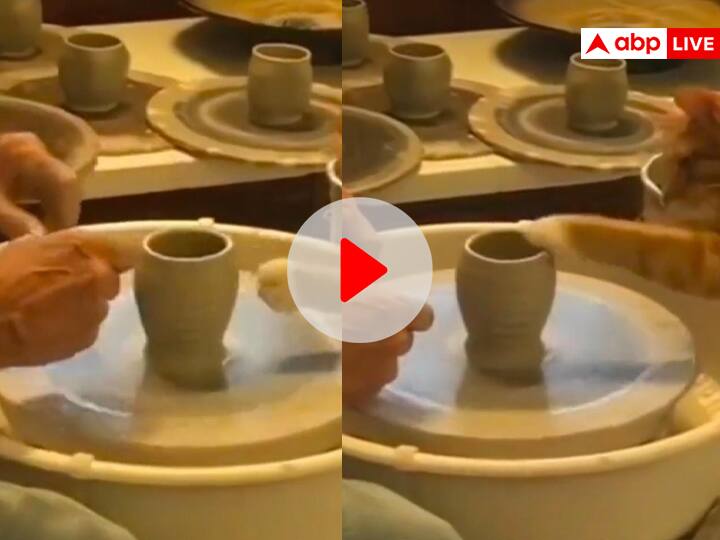 ट्विटर पर शेयर किए गए इस वीडियो में एक आदमी को कुम्हार की तरह मिट्टी के बरतन बनाते हुए देखा जा सकता है. वहीं उसके साथ एक छोटी बिल्ली भी मौजूद होती है जो बड़ी जिज्ञासा से पॉट बनते देखती है. बिल्ली की जिज्ञासा यहीं शांत नहीं होती वो अपना हाथ भी इस पर आजमाती हुई वीडियो में नजर आती है. बिल्ली को इस तरह मिट्टी के बर्तन बनाते देख आप हैरान रह जायेंगे.