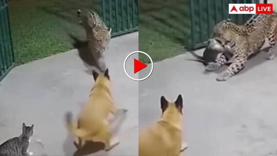 कु्त्ते और बिल्ली का जब भी नाम आता है तो जहन में केवल एक तस्वीर आती है और वो है जानी दुश्मन की. लेकिन जब जान पर बन आए तो ये घरेलू जानवर एक दूसरे को बचाने के लिए अपनी जिंदगी से भी खेल जाते हैं. ऐसा ही कुछ हुआ सोशल मीडिया पर वायरल हो रहे एक वीडियो में. जहां कुत्ते पर हमला करने आए लेपर्ड को बिल्ली मौसी ने इस कदर हड़काया कि खूंखार दरिंदा भी दुम दबाकर वहां से भागता दिखाई दिया. हालांकि वीडियो को लेकर यूजर्स अलग अलग तरह के दावे कर रहे हैं, वीडियो देखकर वाकई में आपका दिन बनने वाला है.