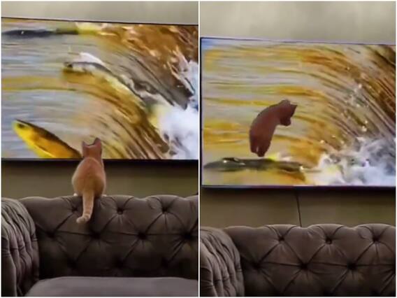 सोशल मीडिया पर वायरल हो रहे इस वीडियो में आप एक बिल्ली को टीवी (Cat Watching TV) देखते हुए देख सकते हैं. टीवी पर बहुत सारी मछलियां दिखाई दे रही हैं. इन मछलियों को देख बिल्ली काफी उत्साहित हो जाती है और अचानक ही मछली को लपकने के लिए टीवी स्क्रीन पर छलांग लगा देती है.