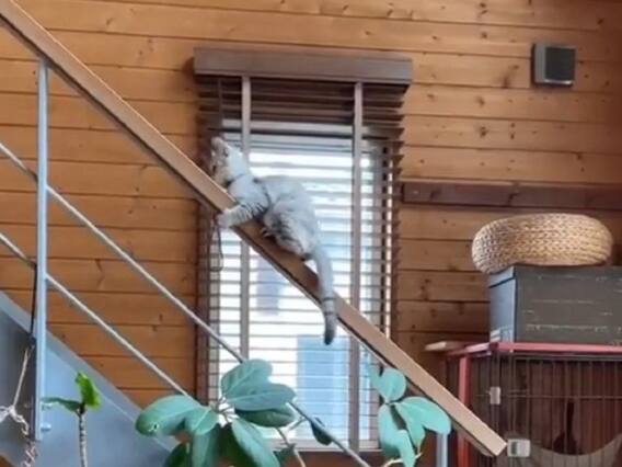 Cat uses railing to come downstair video: सोशल मीडिया पर अक्सर ही जानवरों के वीडियो वायरल होते रहते हैं. जानवरों में बिल्ली को काफी शरारती माना जाता है. बिल्ली की क्यूटनेस के वीडियो की सोशल मीडिया पर भरमार है. बिल्लियों की अगर बात करें तो ये दिखने में जितनी क्यूट होती हैं, उतनी ही ये से शरारती भी होती हैं. ये भी दिनभर कुछ न कुछ खुराफात करती ही रहती हैं, लेकिन इनकी खुराफातें देखने में मजा आता है. कुछ दिनों से सोशल मीडिया पर बिल्ली का ऐसा ही एक वीडियो वायरल हो रहा है जिसे देखकर आप हंसे बिना नहीं रहेंगे और बिल्ली की क्यूटनेस के कायल हो जाएंगे.