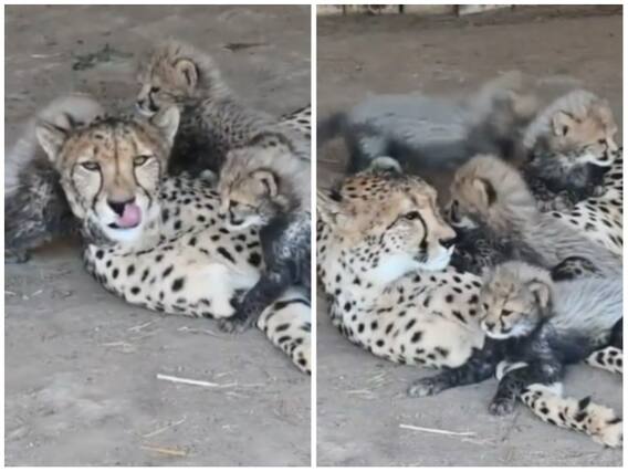 हर कोई चीते के बारे में जानकारी जुटाने की कोशिश करते देखा जा रहा है. सोशल मीडिया पर इसका सबसे गहरा असर पड़ा और चीते कई वीडियो ट्रेंड होने लगे. इस दौरान एक मां चीता और उसके चार बच्चों का वीडियो सोशल मीडिया पर तेजी से वायरल हो रहा है. जो हर किसी का दिल अपनी ओर खींच रहा है.