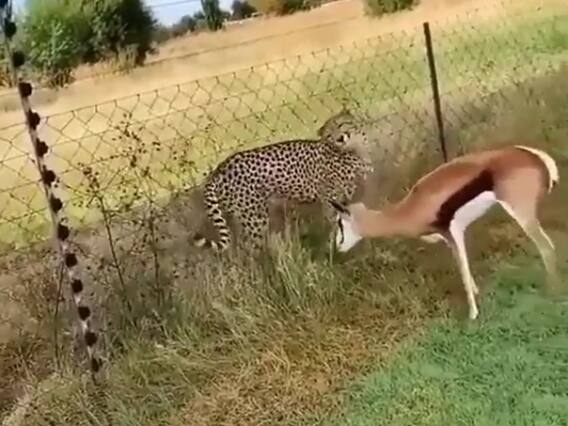 जाल लगे होने की वजह से चीता बेबस हो जाता है. वो कई बार जाल को काटने या हटाने की कोशिश करता है, लेकिन ऐसा कर नहीं पाता. जबकि वहीं दूसरी ओर हिरण यह बात अच्छी तरह से जानता था कि चीता जाल को पार करके इस तरफ नहीं आ सकता है. इसलिए वो बेफिक्र होकर घास खा रहा था और चीता की हरकतों को इग्नोर कर रहा था. आप इस वीडियो में हिरण को बहादुरी से खड़े हुए देख सकते हैं. चीता कई बार हिरण को डराने की कोशिश करता है और उसकी तरफ लपकता है, लेकिन जाल उसका सारा काम खराब कर देता है.