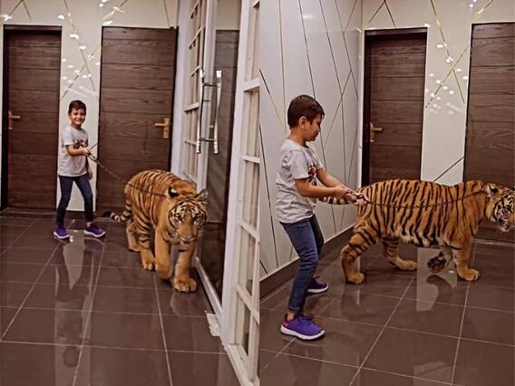 इस वीडियो को पाकिस्तान के एक यूट्यूबर नौमान हसन ने इंस्टाग्राम पर शेयर किया है. वायरल वीडियो में देखा जा सकता है कि एक बच्चा टाइगर को बिल्डिंग में इधर-उधर लेकर टहला रहा है. उसे टाइगर से बिल्कुल डर नहीं लग रहा और ना ही टाइगर बच्चे को कोई नुकसान पहुंचा रहा है. दोनों एक दूसरे के साथ इस तरह टहल रहे हैं जैसे कितने अच्छे दोस्त हों. बच्चा निडर होकर टाइगर को टहला रहा है. टाइगर भी बच्चे की कंपनी को एन्जॉय कर रहा है.